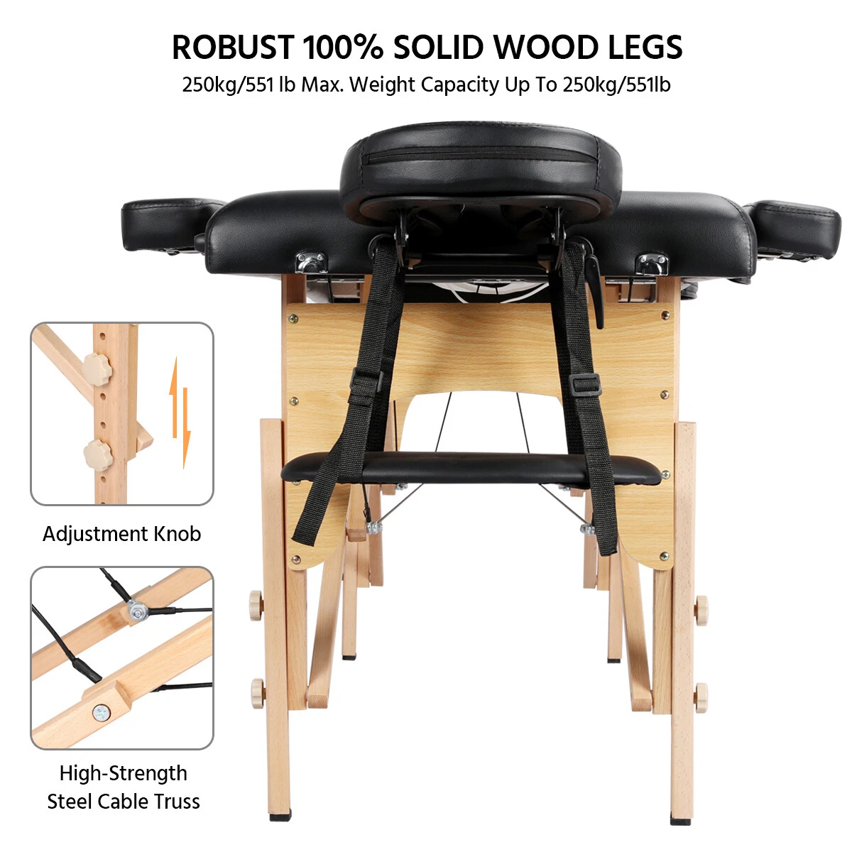 Massage Bed Portable MassageTable Suit Facial Bed, Spa Bed, Folding Black