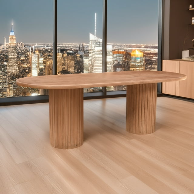 Oval Dining Table Two Elegant Fluted Column Pedestals 8 Seater MangoWood