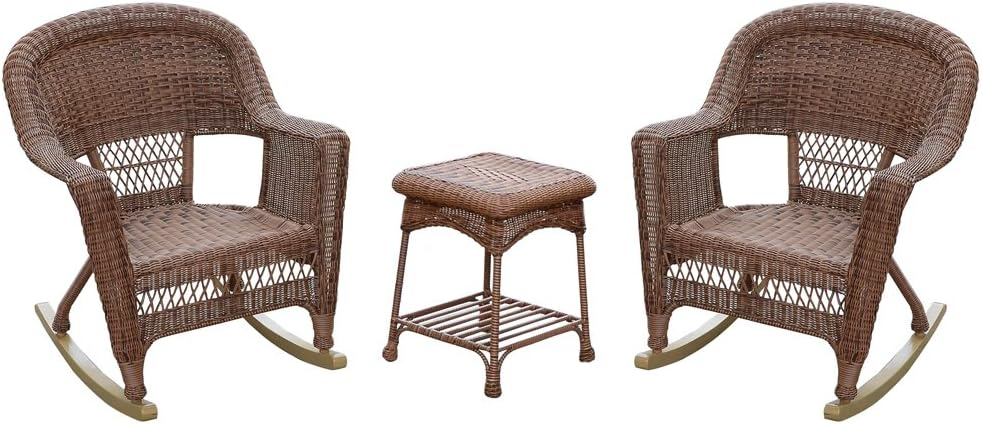 - 1 x Jeco 3 Piece Resin Wicker Outdoor Patio Rocker Chair Set in Honey