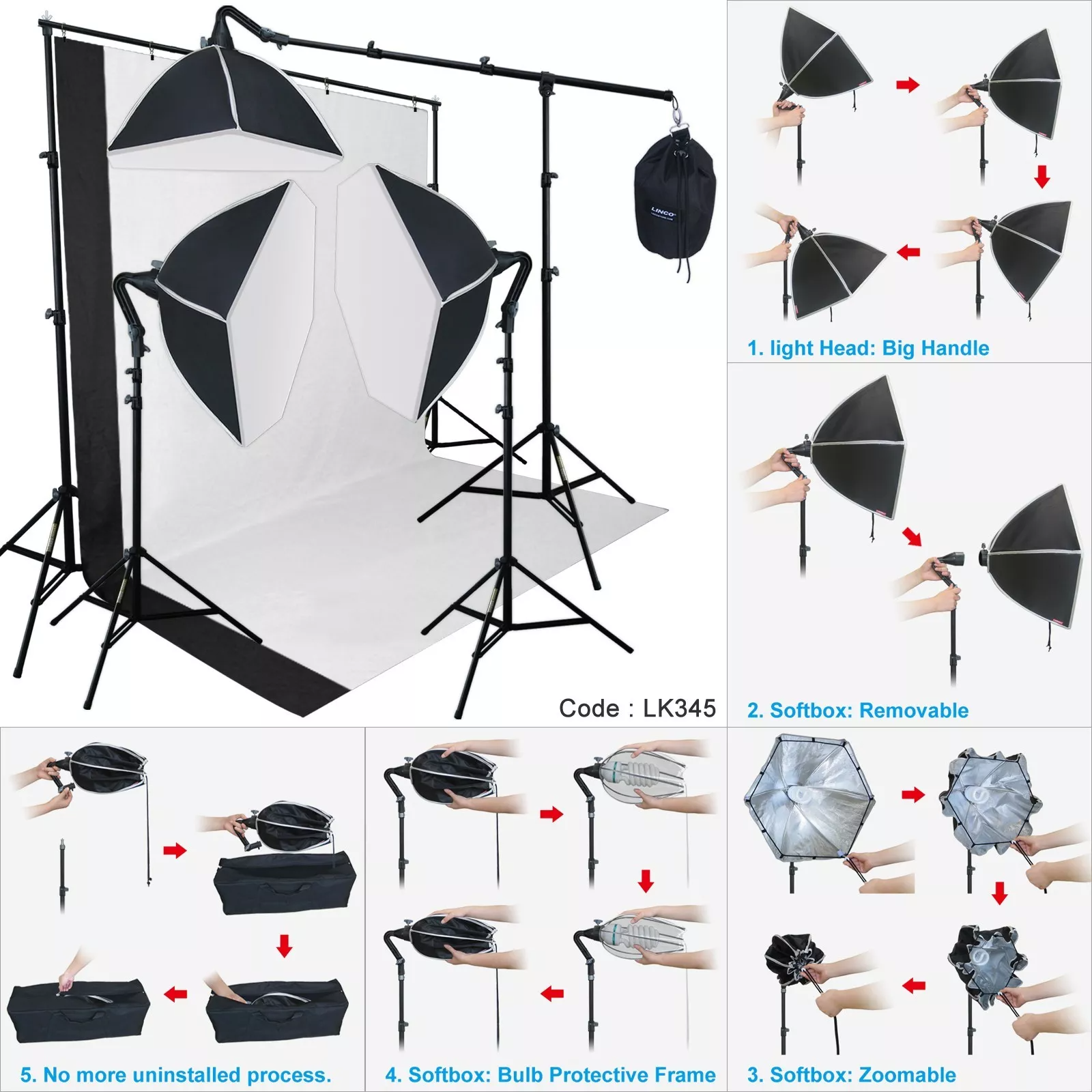 - 1 x Light Stand Carrying Bag - Custom designed for background support kit and accessories